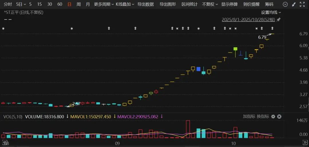 值得注意的是,*ST正平今年9月同样因股价异动被停牌核查。*ST正平9月30日公告,公司股票自2025年9月1日至9月30日累计涨幅为101.86%,期间15天涨停,4次触及异常波动。为维护投资者利益,公司股票自2025年10月9日开市起停牌。此后,10月15日*ST正平公告,公司股票于10月16日开市起复牌。